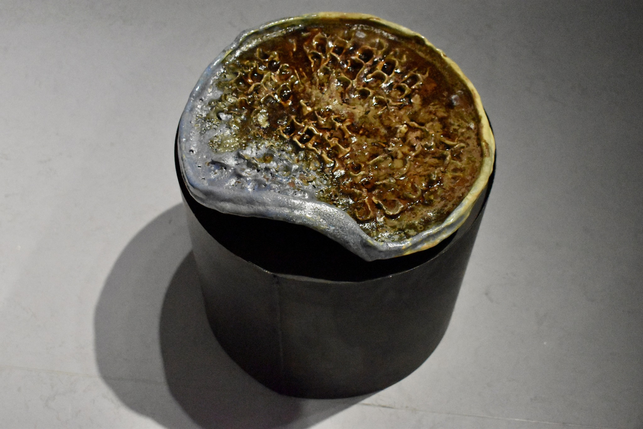 Au "Delta", son installation retient toute notre attention, reposant sur les traces (déchets) que l'Homme enfouit au plus profond des entrailles de la terre et, peut-être, de lui même. Et si ses "fûts", qui nous rapprochent des barils de pétroles de "Chrito", sont des symboles de la transmission de matières toxiques, de la beauté ressort de son travail, comme un magma d'espoir ...