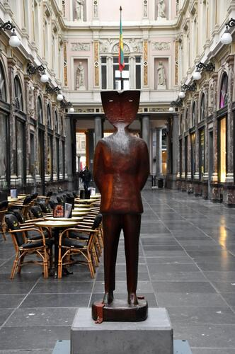 Descendant par le Mont des Arts, nous atteignons les « Galeries Saint-Hubert », où nous découvrons une série de sculptures (1996-1999), intitulée « L’Année des Pensées ».