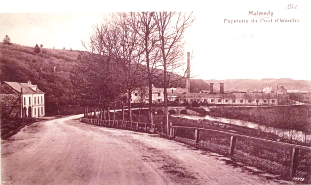 La nouvelle papeterie, au pont de Warche, est construite en 1910, avec une production de 5 tonnes de carton par jour. Elle sera mise à l’arrêt durant la Première Guerre mondiale (Malmedy était encore alors en Prusse).