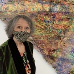 Au 3è étage du « Delta », nous touchons au « nirvana », grâce à Martine Canneel (°1936) - jeune artiste, qui fêtait ses 85 ans, le jour de notre visite de presse, le vendredi 19 mars -, qui nous offre, entre tant d’autres, une oeuvre en six petits tableaux, de 1991, réalisée en technique mixte, intitulée « Petits Paysages du Nirvana ».