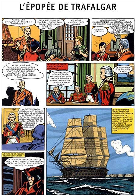 Un exemple : nombreux, en Belgique, ignorent pourquoi il y a, à Londres, un square Trafalguar, ni pour quelle raison la colonne Nelson y a été édifiée ? "L'épopée de Trafalgar", dessinée, en 1952, par Jean Graton, nous le révèle...