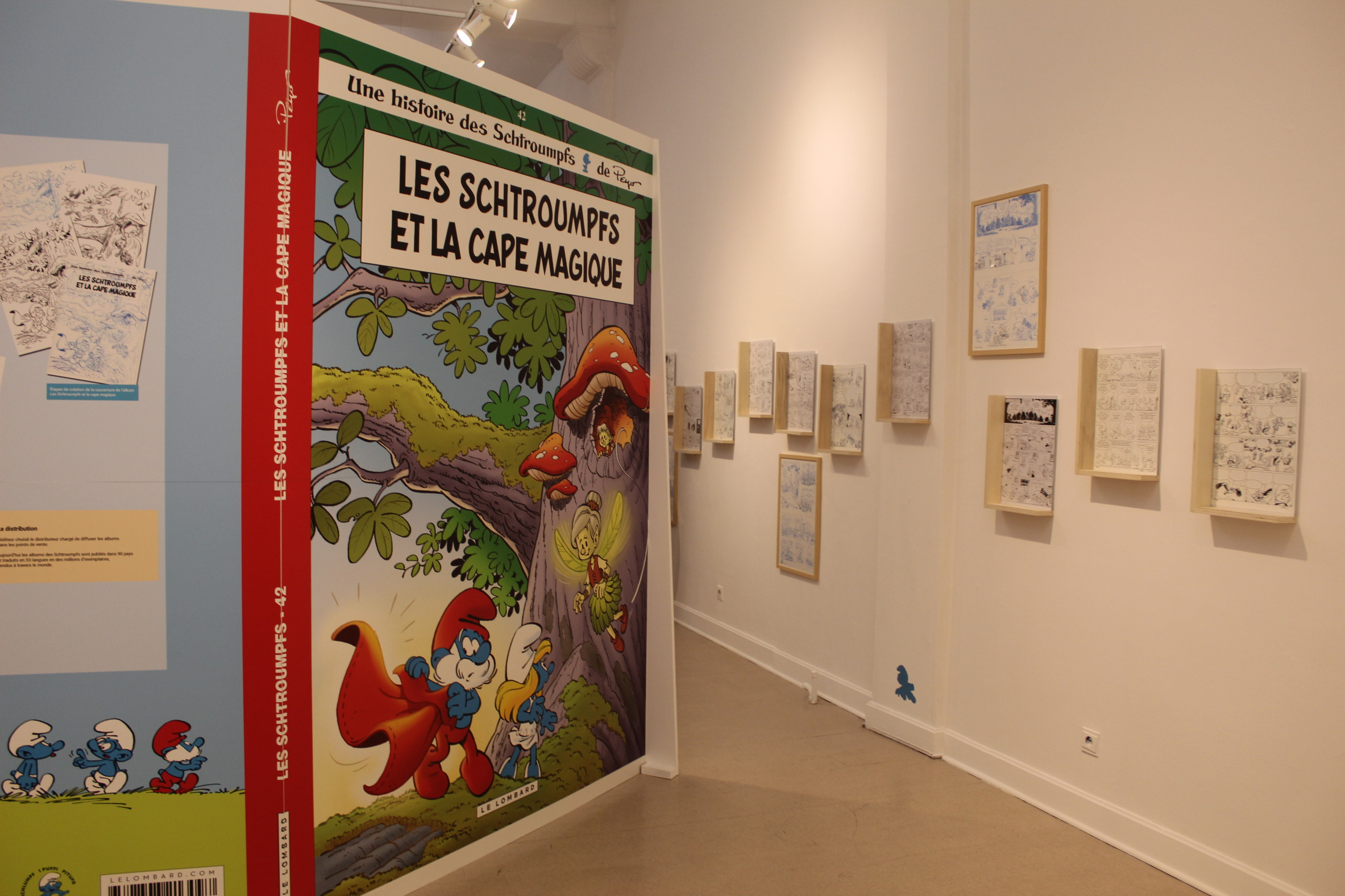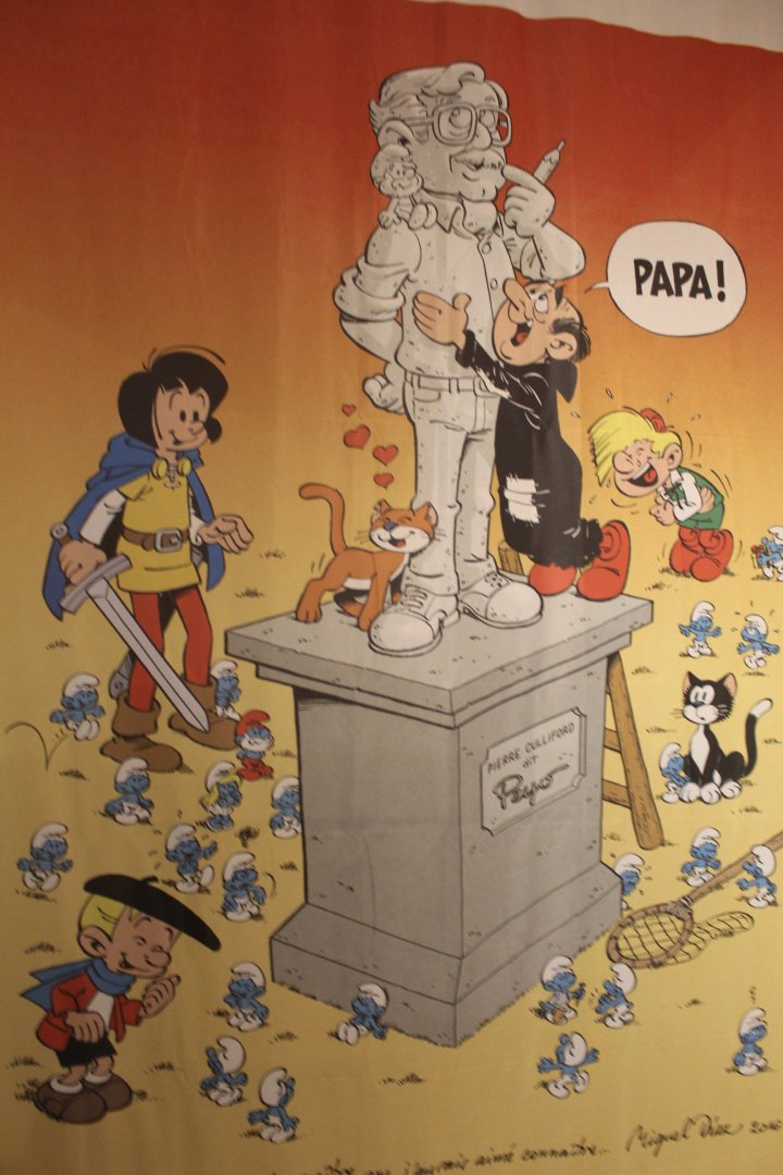 Au sein de la présente exposition, dans un couloir, entre deux salles, Miguel Diaz Vizoso rend hommage, avec nombre de photographies, à Pierre Culliford, qu’il regrette profondément de n’avoir jamais rencontré, ce couloir se terminant par la présentation des albums des « Schtroumpfs » auxquels, il collabora, l’un comme co-scénariste : « Un Enfant chez les Schtroumpfs » (Ed. « Le Lombard »/2007/25è album de la série) ou comme co-dessinateur ou seul dessinateur, pour ce dernier éditeur : « Schtroumpf le Héros » (2015/33è), « Les Schtroumpfs et le demi Génie » (2016/34è), « Les Schtroumpfs et le Dragon du Lac » (2018/36è), « Les Schtroumpfs et la Machine à rêver » (2019/37è), « Les Schtroumpfs et le Vol des Cigognes » (2020/38è/le 1er de 3 aventures comme seul dessinateur), « Les Schtroumpfs et les Enfants perdus » (2022/40è) & « Les Schtroumpfs et la Cape magique » (2024/42è).