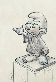 Créés, en 1958, par « Peyo » (Pierre Culliford/1928-1992), ces « Schtroumpfs » n’étaient alors que des personnages secondaires, de la neuvième aventure de « Johan et Pirlouit », intitulée « La Flûte à six Six Trous », publiée au sein de l’hebdomadaire « Journal Spirou », dont le titre devint « La Flûte à six Schtroumpfs », lors de son édition en albums, en 1960, par les Ed. « Dupuis », titre repris pour un dessin animé long métrage, réalisé par les « Studios Belvision » (Belgique/1975/71′), marquant le début des « Schtroumpfs » au cinéma.