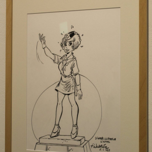 Ainsi, Miguel Diaz Vizoso nous signala qu’il n’avait pas voulu demander cela à son ami François Walthéry (°Argenteau/1946), le créateur, en 1970, de « Natacha », se déplaçant, actuellement, en chaise roulante. A l’occasion d’une récente rencontre, ce dernier s’étonnant que le dessinateur louviérois ne lui aie rien demander, lui promit que lui aussi allait se mettre au travail, son oeuvre – une « Natacha », dans la pose de « L’Appel » – étant, bien sûr, exposée.