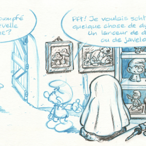 C’est ainsi que commença la véritable carrière BD de Miguel Diaz Vizoso, devenu expert quant à dessiner ces « Schtroumpfs », l’un d’eux étant repris sur l’affiche la présente exposition.