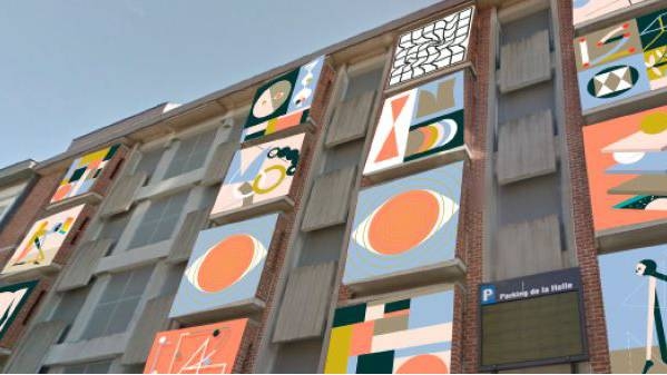 Il est vrai que l’architecture du bâtiment est toute différente, puiqu’abritant, froidement, le« Parking de la Halle », d’où ce souhait des artistes d’offrir à cette façade sans vie, des tons pastels harmonieux, synthétiques, dans un style moderne. Ils nous disent : « Le mur et ses seize supports indépendants les uns des autres sont travaillés, de manière à faire voyager le spectateur dans le temps et les différents styles : figuration, abstraction, références au temps, modernisme, classicisme. » Pari réussi pour ces deux artistes d’origine montoise, qui ont déjà exposé à Mons, en 2018, au « BAM », mais aussi en Chine, en Espagne, en France, aux Etats-Unis, …