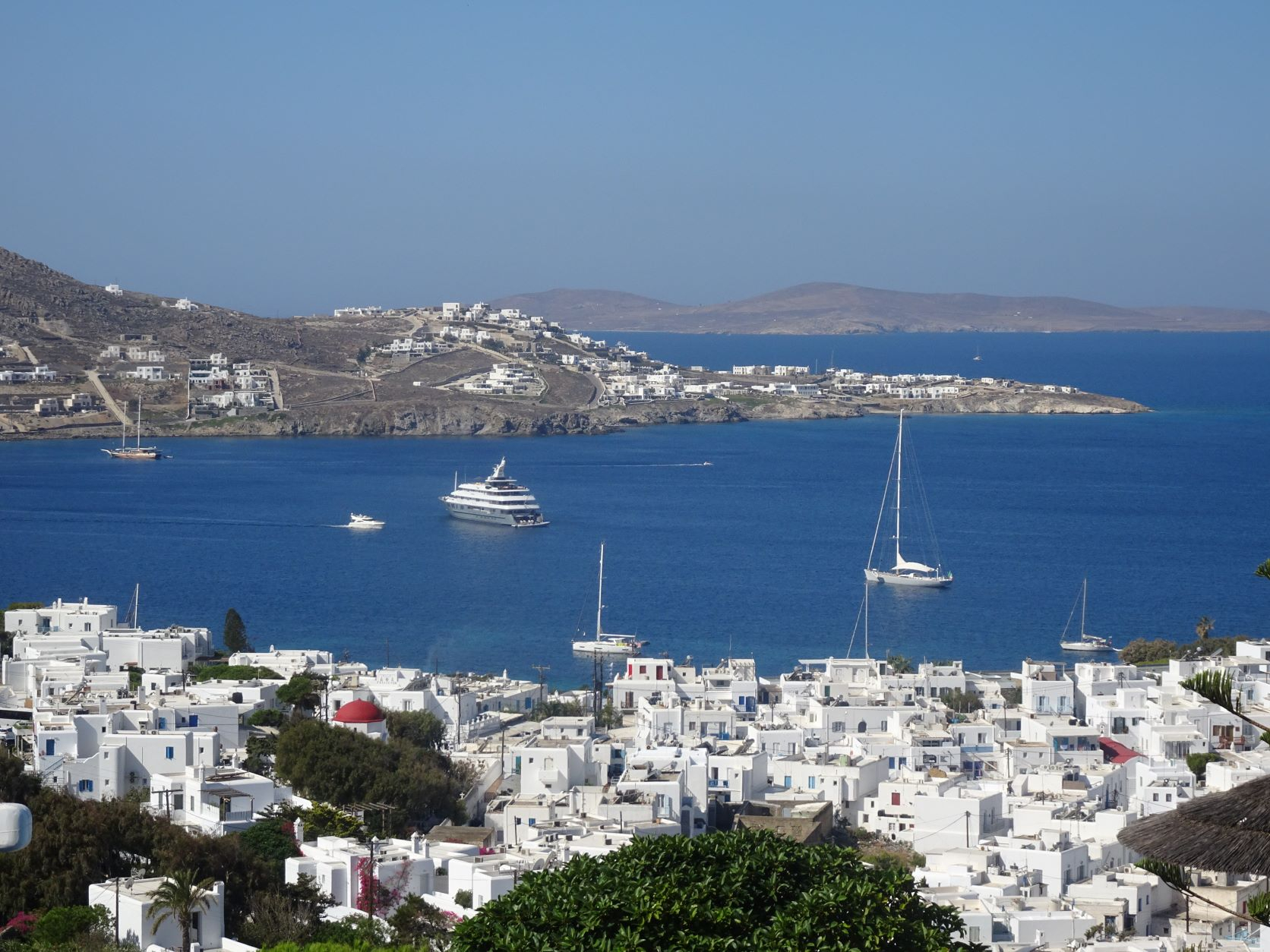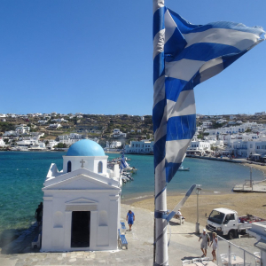 Kalo taxidi stin Mykonos. Bon voyage à Mykonos. Efkaristo poli, yassou. Merci beaucoup et salut.