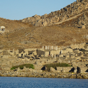 Délos, petit pays de granite du dieu de lumière, est une visite habituelle au départ de Mykonos, pour 20€. Le bateau quitte le vieux port de Mykonos à 10h et pendant 30 minutes, vous pouvez voir le port de Mykonos, avec ses moulins, son église Paraportiani et la Petite Venise. Délos est une île-musée. L'autre Pompéï de la Mer Egée, mérite une visite lors de tout séjour dans les Cyclades et plus particulièrement à Mykonos, Kali episkepsi sto Délos. Bonne visite à Délos. Délos est une petite île, basse, d'une superficie de 3km²430. Suivant la mythologie, Délos est le lieu de naissance d'Apollon, dieu grec des arts, du chant, de la musique, de la beauté masculine, de la poésie et de la lumière et d'après quelques mythes, d'Artémis aussi, enfant de Zeus, déesse de la nature sauvage et de la chasse. Odysseus Elytis écrivait : « L'Egée, l'Amour, la proue de ses écumes, les mouettes de ses rêves, sur son plus haut mât, un marin dresse l'oriflamme d'une chanson. L'Amour, son chant, les horizons de son voyage et l'écho de sa nostalgie, sur le rocher le plus battu, la fiancée guette un navire. L'Amour, son navire, le calme qui suit des meltems et le foc de ses espoirs, sur sa vague la plus légère, une île berce l'arrivée ». Leto, la mère d'Apollon, ne trouvait pas de place pour accoucher parce qu'elle était persécutée par Ira, l'épouse de Zeus. Seule Délos, petite et inconnue, qui jusqu'à ce temps errait dans les vagues, accepte de lui donner asile, après avoir obtenu de Leto, la promesse que le dieu auquel elle donnerait naissance ne quitterait jamais l'île. Alors, l'île flottante cessa de flâner dans les vagues et devint Délos, qui en grec, signifie visible. En 700 avant J-C, Délos est un centre religieux important du culte d'Apollon, Sur ce site fascinant, on peut admirer la fameuse Terrasse des Lions, sculptés en marbre de Naxos. Les 5 lions originaux sont exposés au musée de Délos, à quelques pas des copies, face au Lac Sacré, autrefois peuplé des cygnes d'Apollon et des oies sacrées du sanctuaire. Il existe plusieurs maisons intéressantes, comme la maison de Dionyssos, la maison des masques, la maison des Dauphins, la maison de Cléopâtre, la maison du Trident, le temple d'Artémis, le temple d'Apollon, l'Agora des Italiens, la salle hypostyle, le gymnase, le stade, le théâtre et le mont Cynthe. Délos est une visite habituelle au départ de Mykonos, pour 20€. Le bateau quitte le vieux port de Mykonos à 10h et pendant 30 minutes, vous pouvez voir le port de Mykonos, avec ses moulins, son église Paraportiani et la Petite Venise. Délos est une île-musée. L'autre Pompéï de la Mer Egée, mérite une visite lors de tout séjour dans les Cyclades et plus particulièrement à Mykonos.