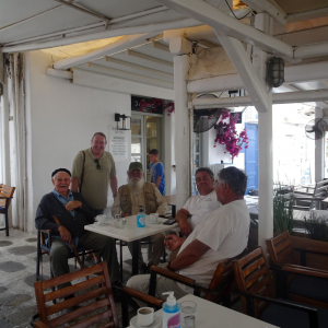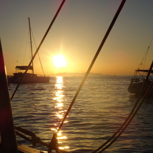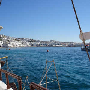 Un conseil : réservez une excursion en bateau vers Rineia et Délos, avec le coucher de soleil au retour vers Mykonos. C'est fabuleux ! Aegean Ventures organise cette escapade magnifique et très agréable au départ du port de Mykonos (près du grand parking public). Vous pouvez réserver chez Maroussa au kiosque de Aegean Ventures, une dame bien sympathique d'origine bruxelloise ou dans votre hôtel. Le capitaine était gardien dans l'île de Délos et avec sa famille, il propose cette balade inoubliable de 16h30 à 20h30. Un arrêt à Rineia permet de nager ou de se relaxer à bord. Le prix de 60€ comprend la traversée de 40 minutes et lors du retour, on vous sert un ou deux verres de vin, un snack léger et un cokctail peu avant le coucher de soleil. Un seul mot : à faire ou à refaire (www.aegean-ventures.com).