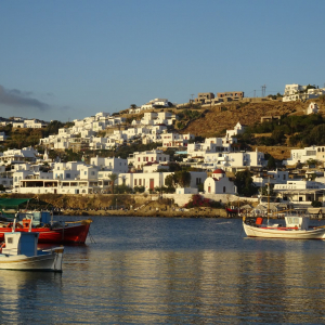 Kalos ilsate stin Mykonos, bienvenue à Mykonos, le Saint-Tropez de la mer Egée. Au sein des îles grecques, Mykonos occupe la 33ème place du point de vue superficie (85,48 km2). De petites maisons cubes soigneusement chaulées semblent s’entasser en magma blanc laiteux dans la rocaille sèche et ocre, juste au-dessus d’une Egée bleu sombre qui vire au transparent clair, voici le spectacle proposé par Mykonos.