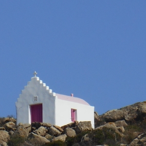 Cinq moulins dressent leurs ailes tronquées dans le ciel, rendu extraordinairement pur, par le vent de l’été, le meltem. Tout semble avoir été ordonné par un publicitaire de talent. Mykonos compte 365 chapelles et Paraportiani est le monument le plus photographié de l’île. Il s’agit d’un ensemble de quatre petites églises au niveau du sol et une à l’étage, qui est connue comme Paraportiani (parce qu’elle se trouve près de la petite porte –en grec, paraporti). Il parait que le groupe fut construit progressivement au XVIe et XVIIe siècles. Des fouilles sont effectuées près de Paraportiani ; il s'agit de restes d'un château médiéval. La Venise de Mykonos reste gravée dans la mémoire de chaque touriste. Des maisons construites sur la mer, avec des balcons en bois, sous lesquels déferlent les vagues rappellent une image de Venise.