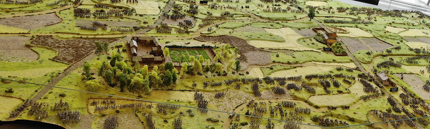 Sachant que deux des trois prix d'entrée à l'expostion inclus l'accès à la collection permanente du "Mémorial de la Bataille de Waterloo 1815", ne manquons pas de l'opportunité de la découvrir, à commencer par un diorama du champ de bataille, d'une superficie de 33 m2, réalisé par le modéliste hollandais Piet Prinsen. Nous y trouvons, fidèlement reconstitués : canons, cavaliers, drapeaux, étendards, fantassins, fermes historiques, régiments, soldats, ... Rien ne manque !
