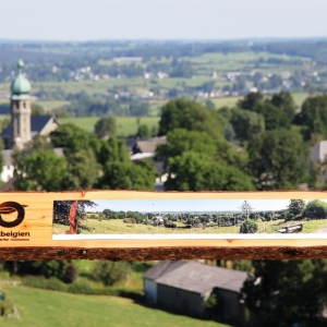 Il fallait donc trouver un design uniforme propre aux produits touristiques des Cantons de l’Est, à savoir « Bienvenue dans le surprenant jardin de l’Europe ». Cette devise détermine depuis deux ans les produits touristiques dans les Cantons de l’Est. Les panneaux sont constitués d’une planche orientable en bois massif en mélèze indigène qui est maintenue par deux piquets métalliques. La face avant arbore le O de « Ostbelgien » en marquage à chaud ainsi que la photo panoramique avec les références numériques reprises sur une plaque résistante aux intempéries. Le verso présente des informations sur les lieux référencés.
