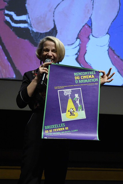 Présentation de la première affiche, à l’époque des « Rencontres du Cinéma d’Animation » © Ph. : R. Fang