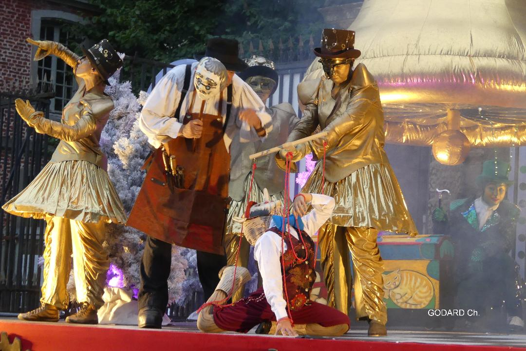 Ici, pas question de quart d’heure académique, vu que les représentations s’enchaînent. A la minute prêt, « Geppetto » et « Pinocchio » se retrouvent sur la scène, pour la première séquence de ce spectacle itinérant, après quelques mots de remerciements aux propriétaires de ce lieu féerique, la Princesse et la Prince de Ligne …