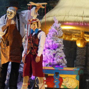 Tout commence, assis devant une première des neuf scènes du spectacle itinérant, à l’entrée du domaine de Beloeil, « Geppetto », sculpteur sur bois, se promnène parmi les enfants, manipulant sa création, une marionnette, à qui il donna le nom de« Pinocchio ».