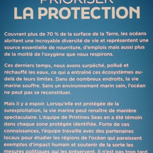 L’exposition itinérante Pristine Seas révèle les avantages des aires marines protégées (AMP) dans la protection de la biodiversité, la préservation des stocks de carbone et la sécurité économique et alimentaire des communautés locales qui dépendent de l’océan pour leur survie.