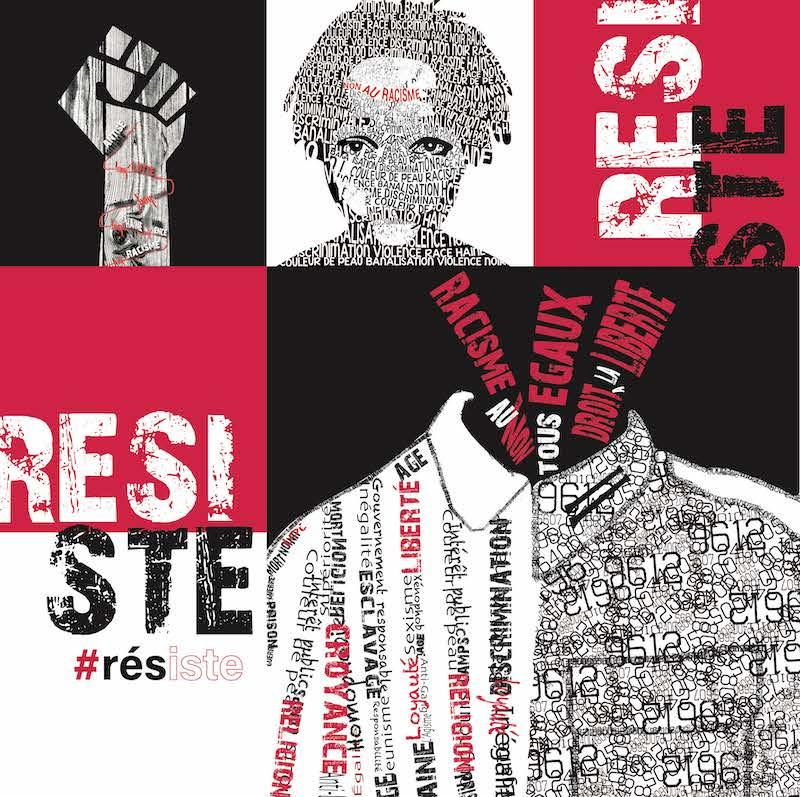 « Nous avons retenu les travaux picturaux de dix d’entre eux et avons finalisé leurs projets en les rassemblant en un tryptique carré, choisissant nous-mêmes un code couleurs uniforme, le noir et le rouge, en référence au code couleurs qu’utilisait le parti nazi durant la Seconde Guerre mondiale. Si nous avons déjà exposé ces trois posters géants à deux reprises, à la « Galerie du Beffroi » et dans notre Institution, nous réfléchissons à réaliser des panneaux qui pourraient être présentés en diférents lieux. »