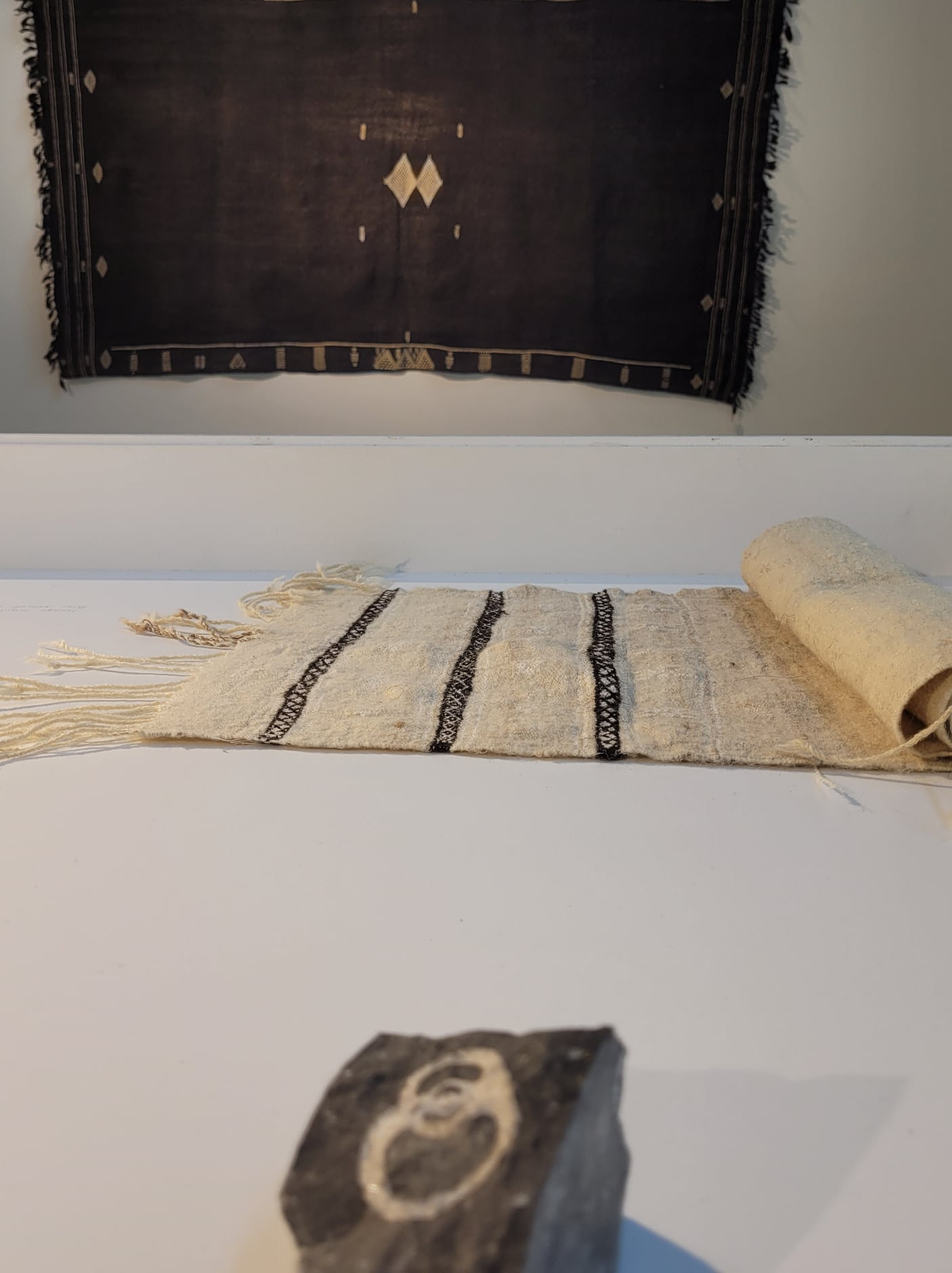 Si les motifs des fossiles n’est pas sans rappeler ceux de certains « Bakhnougs », l’accrochage, quant à lui, nous plonge dans un univers graphique, cette exposition constituant une véritable rencontre entre l’art, la vie et le travail manuel.