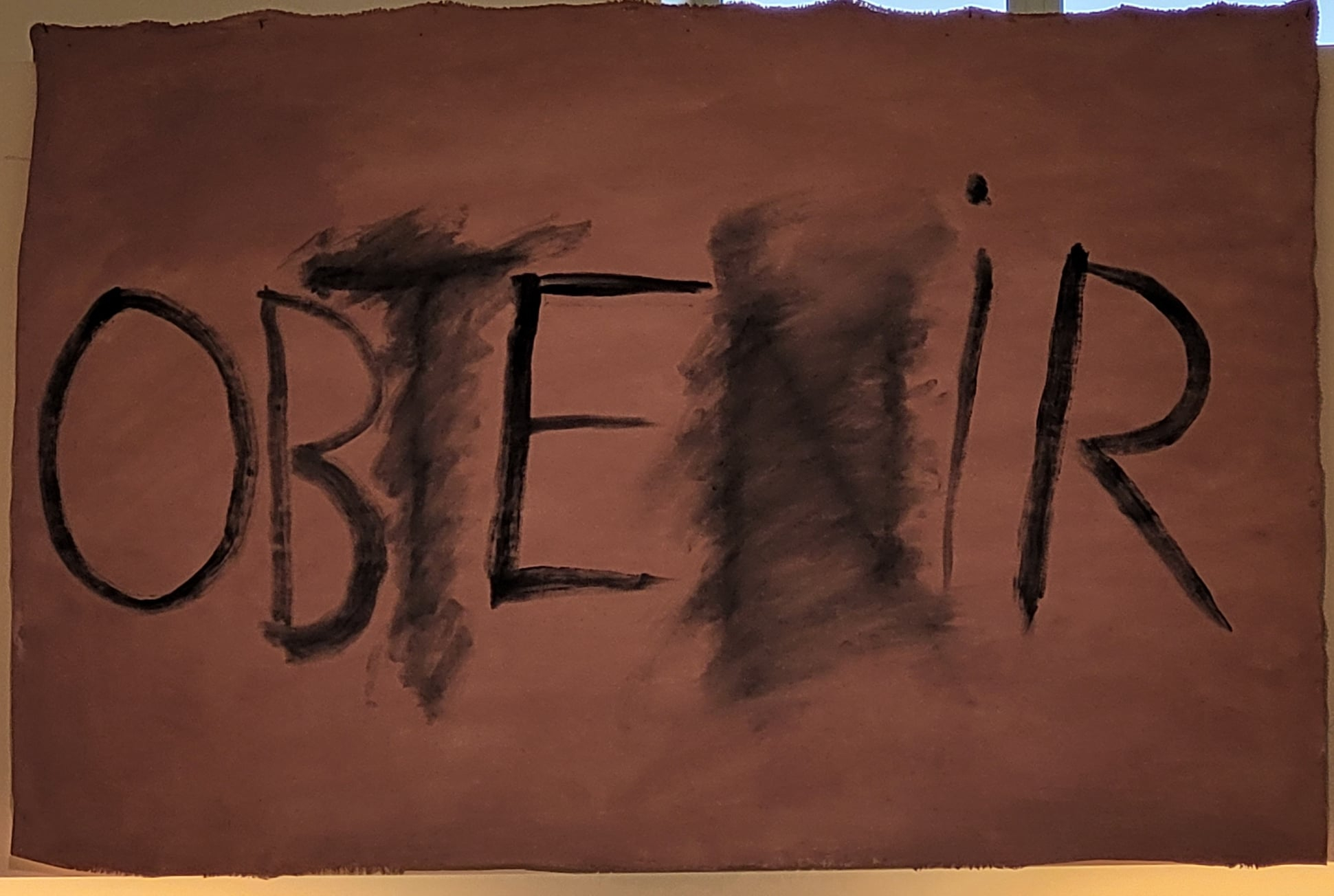 Face à l’univers de symboles, dépourvu de mots du « Bakhnoug », le geste des peintures de Pol Piérart s’imprègne, lui, du vocabulaire et du sens perdu de celui-ci, un langage particulier qui corrige, efface, transforme, sous un geste multiple de couches de peinture.