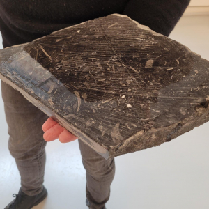 Découpée et façonnée par la main de l’homme, chacune de ces pierres offre ses trésors à nos yeux, notre regard se portant sur les aspects les plus fossilisés de celles-ci.