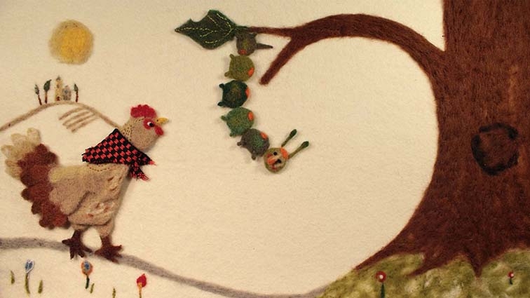 Synopsis : « La poule et la chenille sont amies. Mais le temps est venu de se dire au revoir, de laisser le temps faire son oeuvre… »