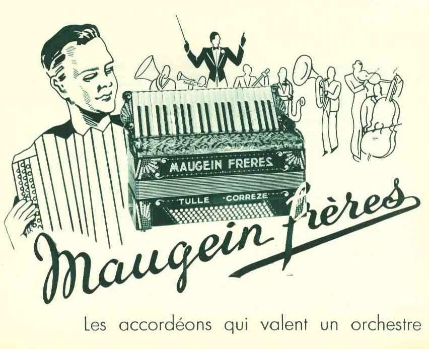 En 1938, gérée par Jean Maugein et ses frères Antoine et Robert, la manufacture Maugein, d’une superficie de 3.000 m2, comptait 200 ouvriers. Après une régression des ventes dans les années ’70, en 1981, le petit neveu de Robert Maugein, René Lachèze, reprenait les rênes de l’entreprise. Menacée de fermeture, elle est reprise, en 2014 , par Richard Brandao, trouvant une nouvelle énergie à l’occasion de son centenaire, en 2019, 50 concerts d’accordéonistes furent organisés, 100 accordéonistes s’étant relayés sur scène, le 28 juin, dans une sorte de marathon musical de douze heures, rendant, ainsi, un bel hommage au « piano à bretelles ».