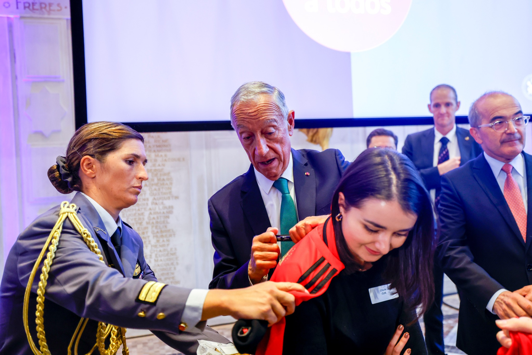 Muni du sabre d’honneur du Commandant de ces marcheurs, Son Excellence Marcelo Rebelo de Sousa ordonna, dans un excellent français : « Portez armes ! Présentez armes ! En joue ! » … Et, ayant baissé son sable, une salve retentit sous son ordre.
