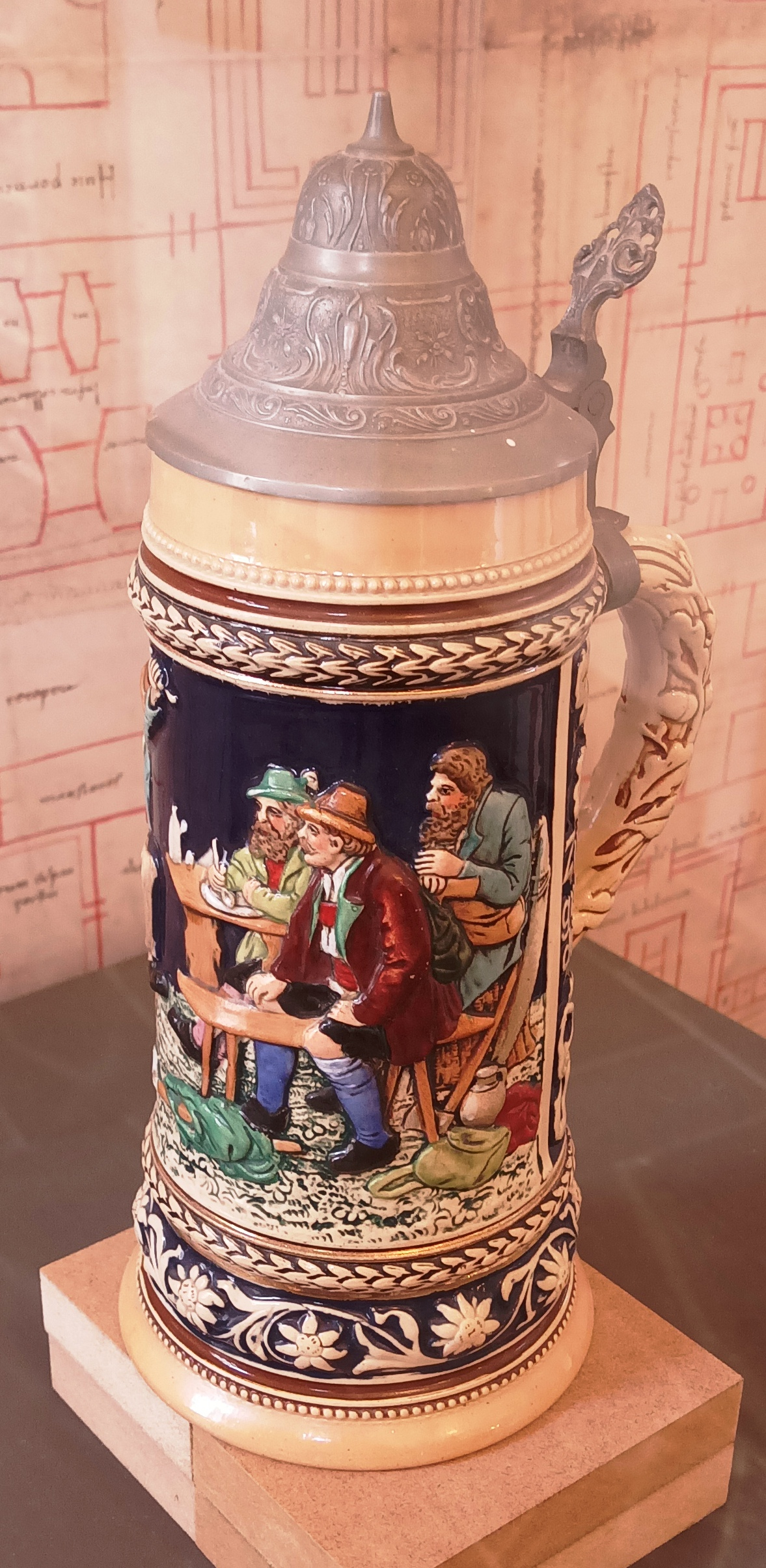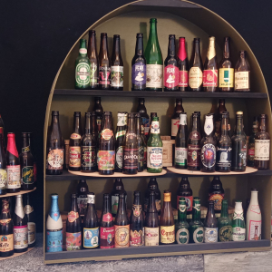 « À votre santé » est une exposition qui se penche sur l’histoire et la fabrication de de la bière à travers des objets de collections, des images d’archives, des vidéos, des panneaux didactiques, un coin bar reconstitué et une collection unique de près de 2.000 bouteilles de bière.