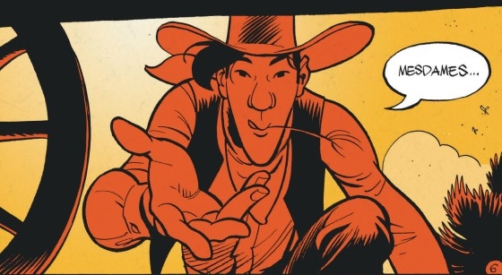 Nous souvenant de « La Fiancée de Lucky Luke » (« Morris » & Guy Vidal/tome 54/Ed. « Dupuis »/1985), 36 ans plus tard, dans la présente aventure, avec ces trois soeurs pour compagnes, notre cowboy solitaire pourra-t-il résister à leurs charmes ? Au fond, comme le disait Matthieu Bonhomme : « (pour « Lucky Luke ») tomber amoureux serait comme pratiquer l’adultère. Mais je ne suis pas certain qu’il ne souffre pas de cet empêchement. Peut-être devrait-il aller voir un psy ? »