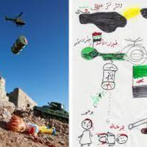 Leur ayant parlé des hommes en armes, qui surgissaient chez eux, de leurs maisons en flammes, des déportations, des égorgements, des pierres contre les fusils, du bruit des hélicoptères, de celui des tanks et des drones, des fuites aux abris et des cadavres dans les rues, ces enfants, mis en confiance, racontèrent l’histoire de leur jeune vie, la dessinant pour tenter de s’en libérer.