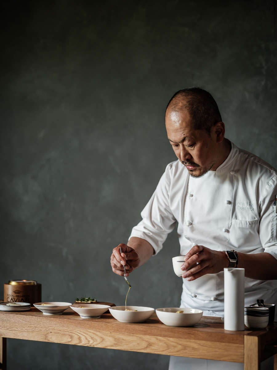Les inspirations coréennes avec les dashi, le kimchi, les coquillages, le rouge.