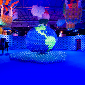 Cet événement monumentale a été réalisée par près de 100 bénévoles de 18 pays, qui ont travaillé sans relâche au cours des deux dernières semaines. Les volontaires sont venus des quatre coins du monde, pour participer à ce projet extraordinaire. Sous la guidance de Guido Verhoef et d’autres artistes de références tels que Rie Hosokai (Japon), Marie Dadow (USA) ou Jiang Peng Zhen (Chine), les ballons ont été méticuleusement gonflés, pliés et assemblés pour former des sculptures complexes.