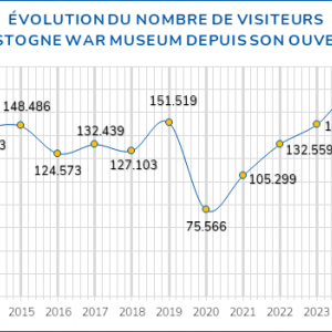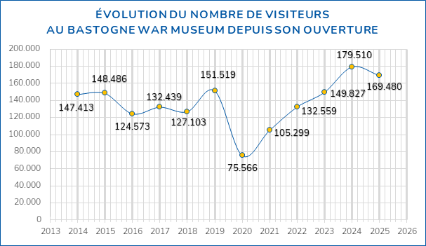 L'année 2024, marquée par le 80e anniversaire de la Bataille des Ardennes, reste l'année record avec près de 180.000 visiteurs.