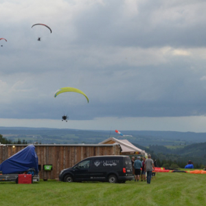 Venus principalement des Flandres et d'Hollande, ces parapentistes décolent sur les hauteurs d'Houffalize, une organisation de PMSA," Paramoteur sports federation".