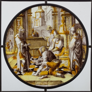 Enfin, l’exposition aborde la question des centres de production. Si, au cours des XVIe et XVIIe siècles, la production de rondels devient une industrie florissante dans les Pays-Bas, leur attribution à l’un ou l’autre atelier, est souvent difficile. Pour distinguer le travail des peintres-verriers actifs à Anvers, Bruges, Gand, Malines, Bruxelles, Louvain, Liège et ailleurs, il faut se baser sur l’iconographie, la technique utilisée et le style, ou encore la provenance des pièces.