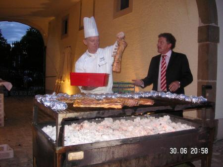gigue de chevreuil aux baies de genévrier et herbes servies avec ses sucs de cuissons