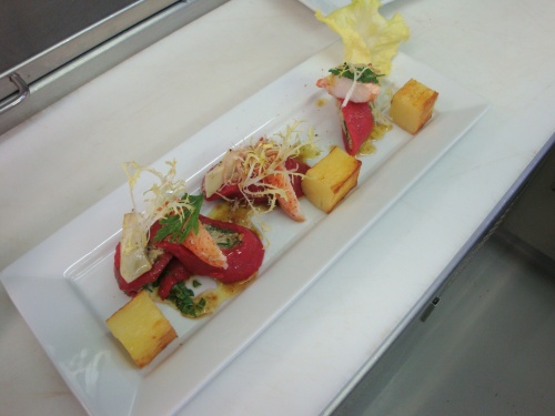 Pomme de terre aux crevettes, vinaigrette aux agrumes 18.80€
